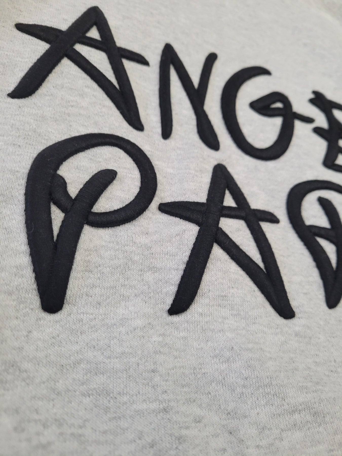 Angel Park heavy weight 100% cotton hoodie with 3D embroidered lettering and side pockets.